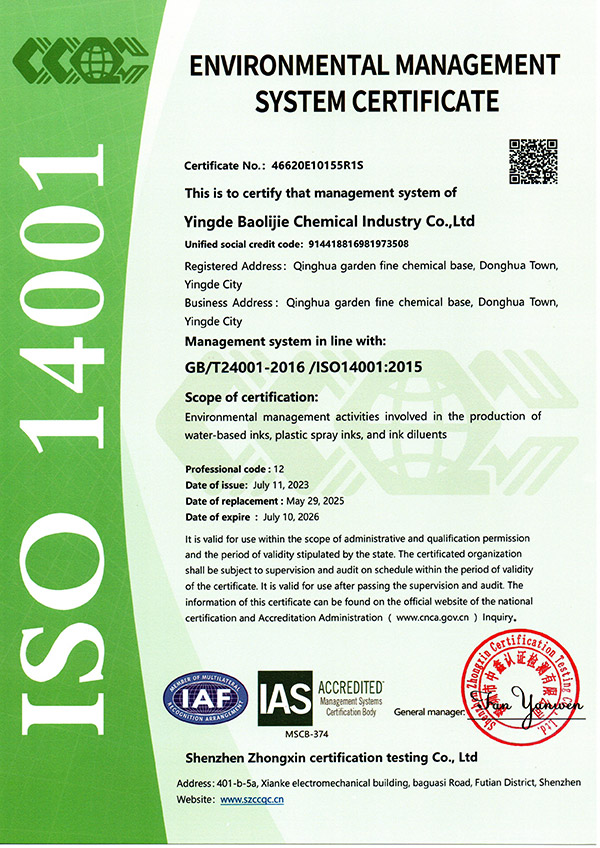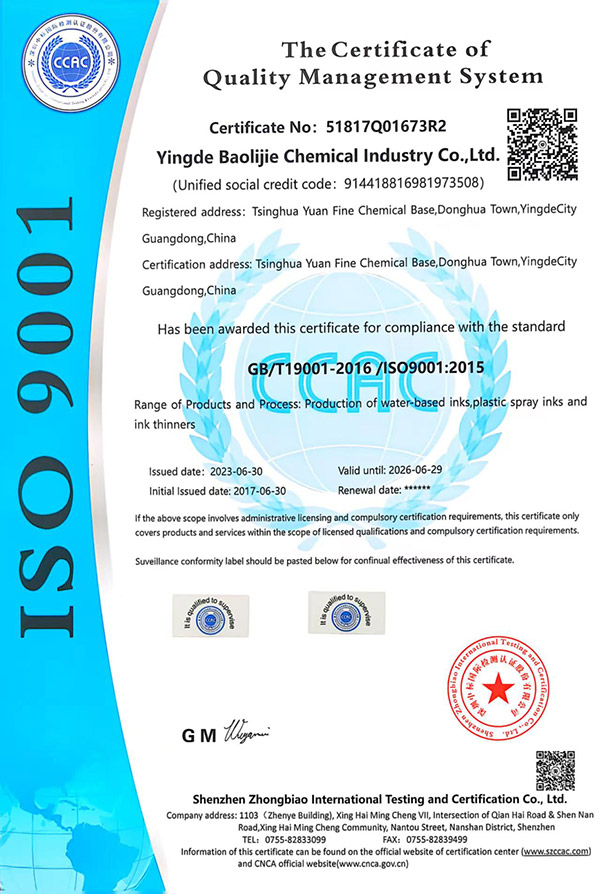Yingde Bolijie New Materials Technology Co., Ltd. is a manufacturer that was founded in 2009 and covers an area of 15,000 square meters. We specialize in the R&D, production, and sales of alternative consumables for industrial inkjet printer. We offer CIJ inks, solvents, cleaners, TIJ inks, DOD inks, and UV Inks. Our independently developed inks are widely used in industries such as food packaging, electronic components, wires & cables, and construction pipes.